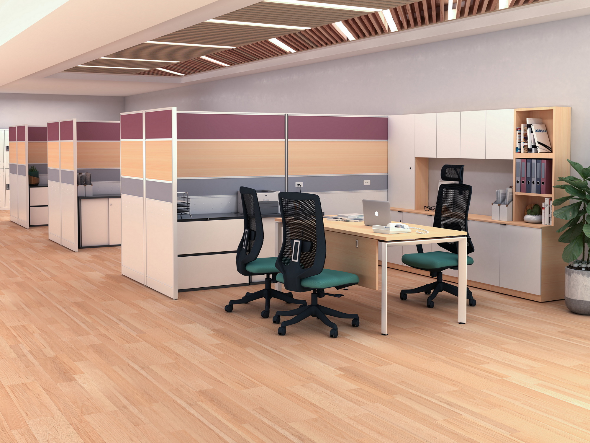 透過 2.5 公分、4 公分與 6 公分 三種屏風厚度自由搭配,FN46 能在開放與專注之間,精準拿捏每一個工作場域的界線。