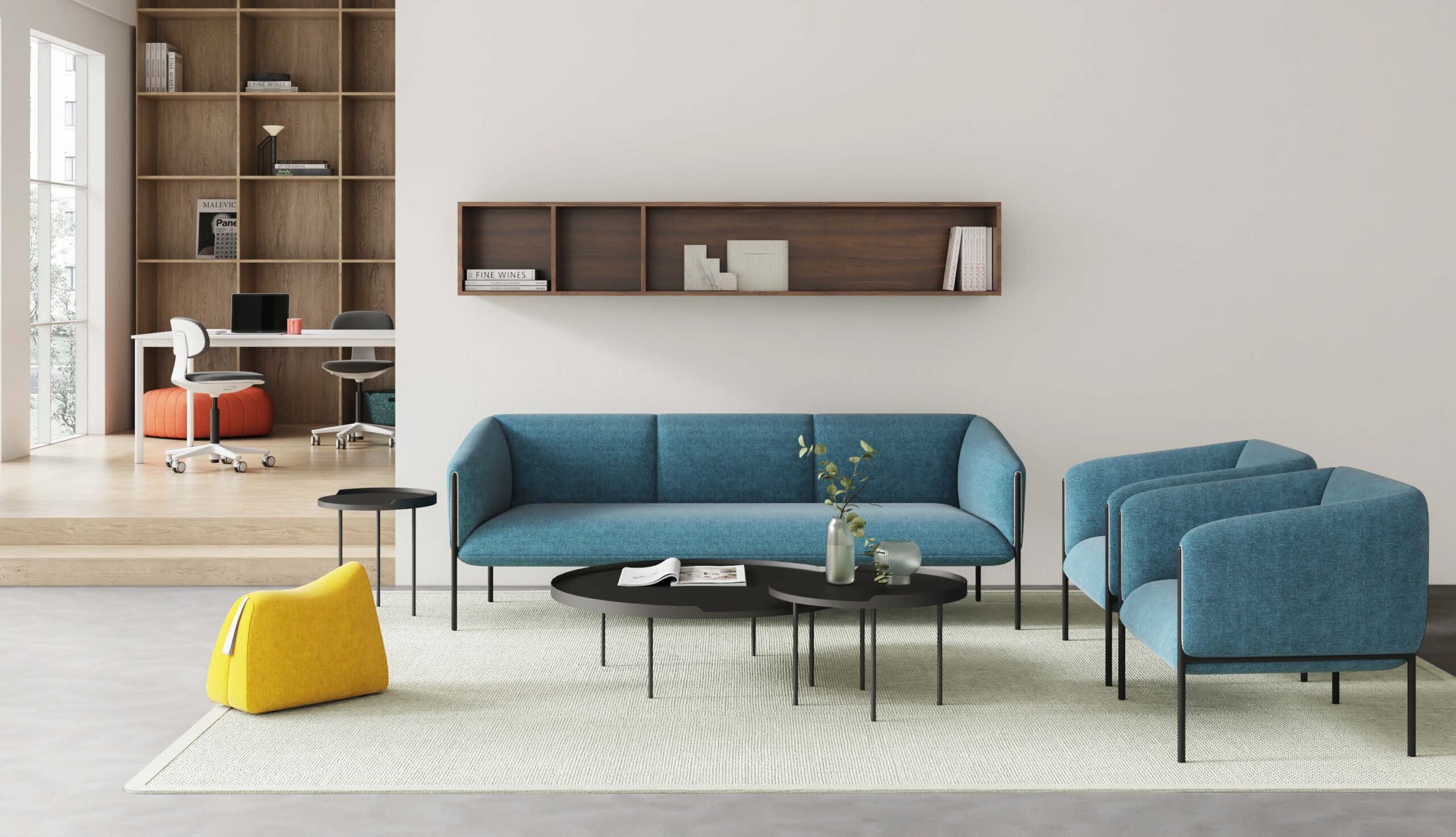 細膩的結構設計與柔和包覆的輪廓,使沙發在開放場域中依然保有秩序感,