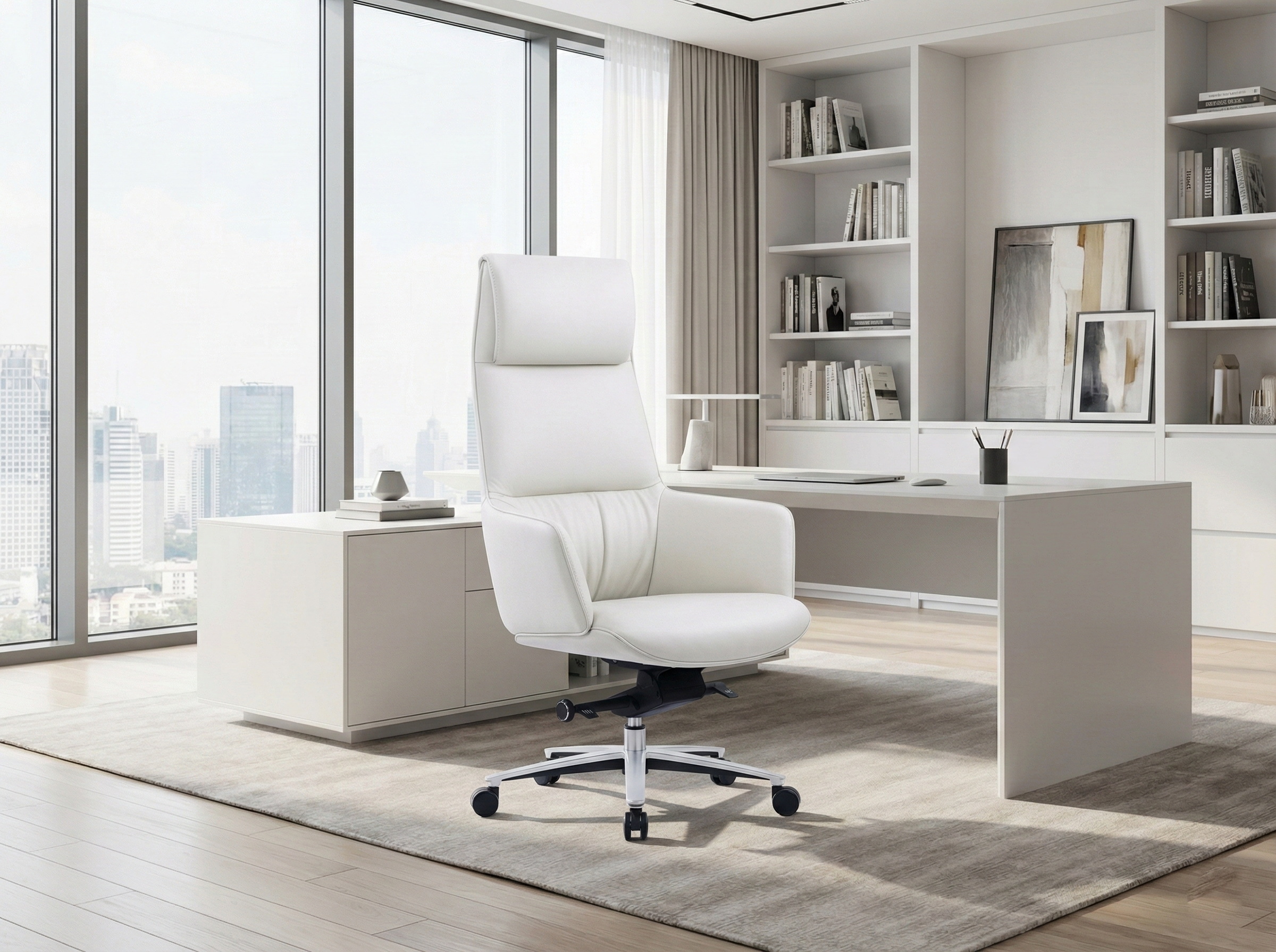 TULIP 將柔與穩定融合於一張椅子之中。柔軟的包覆式靠背,如花瓣輕展,接住長時間專注的思緒;俐落的輪廓線與皮革質感,呈現不張揚卻難以忽視的存在感——是領導者安定且果決的象徵。